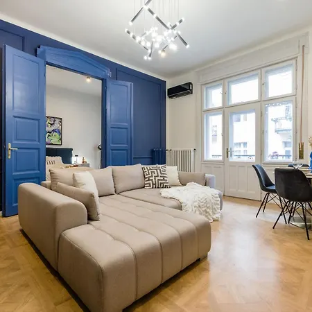 W apartamencie Central Charm In Budapest'S Bustling 7Th District jest wyposażony aneks kuchenny z czajnikami elektrycznymi, lodówką i szklanymi naczyniami. Obiekt leży tylko kilka kroków od od dworca autobusowego Szoevetseg utca. Goście mogą zrelaksować się na patiu.